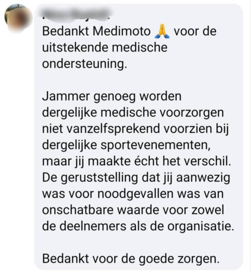 Medimoto & Curacare zullen er zeker bij zijn om alle deelnemers de beste medische ondersteuning te bieden, waar nodig!